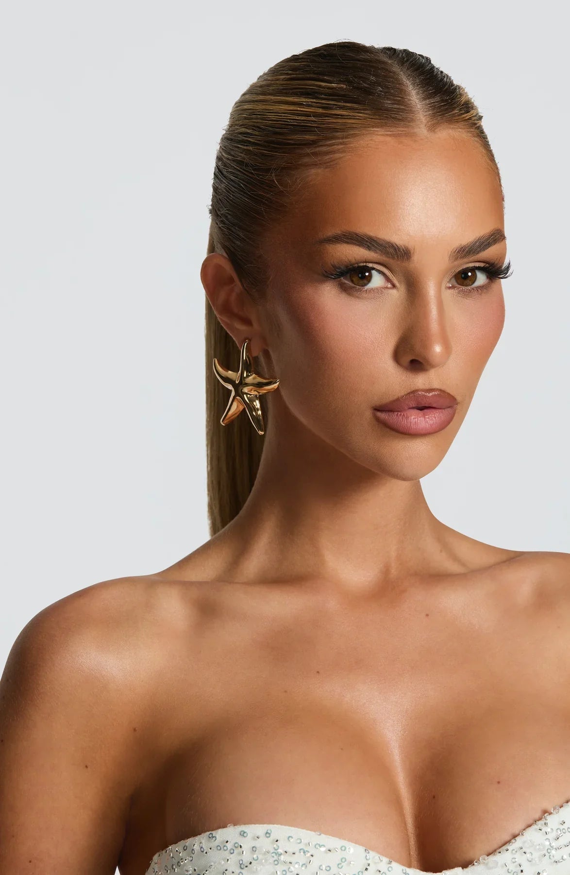 Elevate your look with the Dakona Earrings in gold. Featuring a polished, high-shine finish, these statement starfish-shaped earrings add a refined touch of elegance to any outfit.