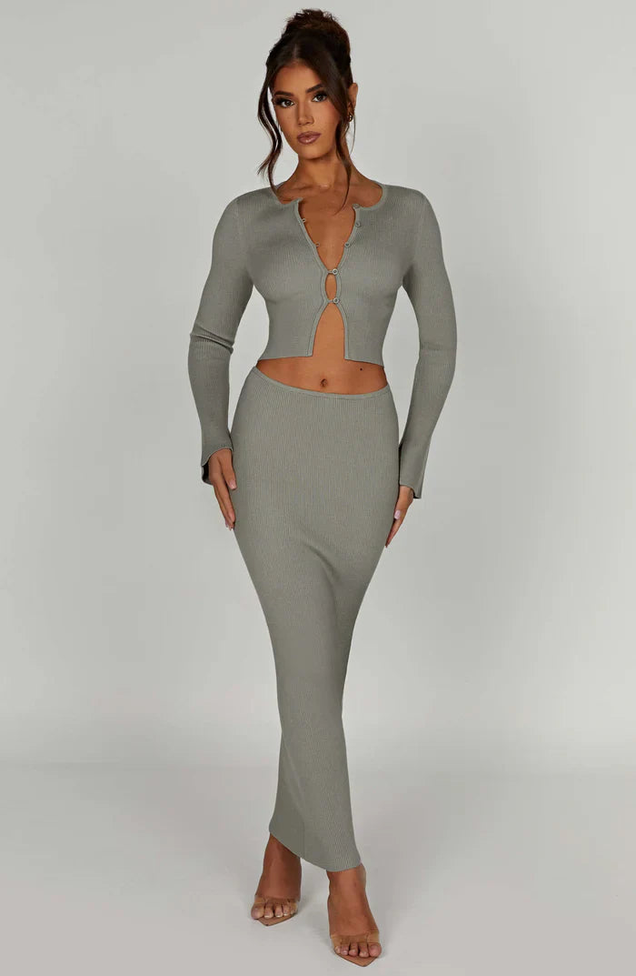 Knit's never looked better. The elevated Elia skirt is made from super comfy ribbed knit which moulds to your body figure and looks gorgeous teamed with the Elia set.