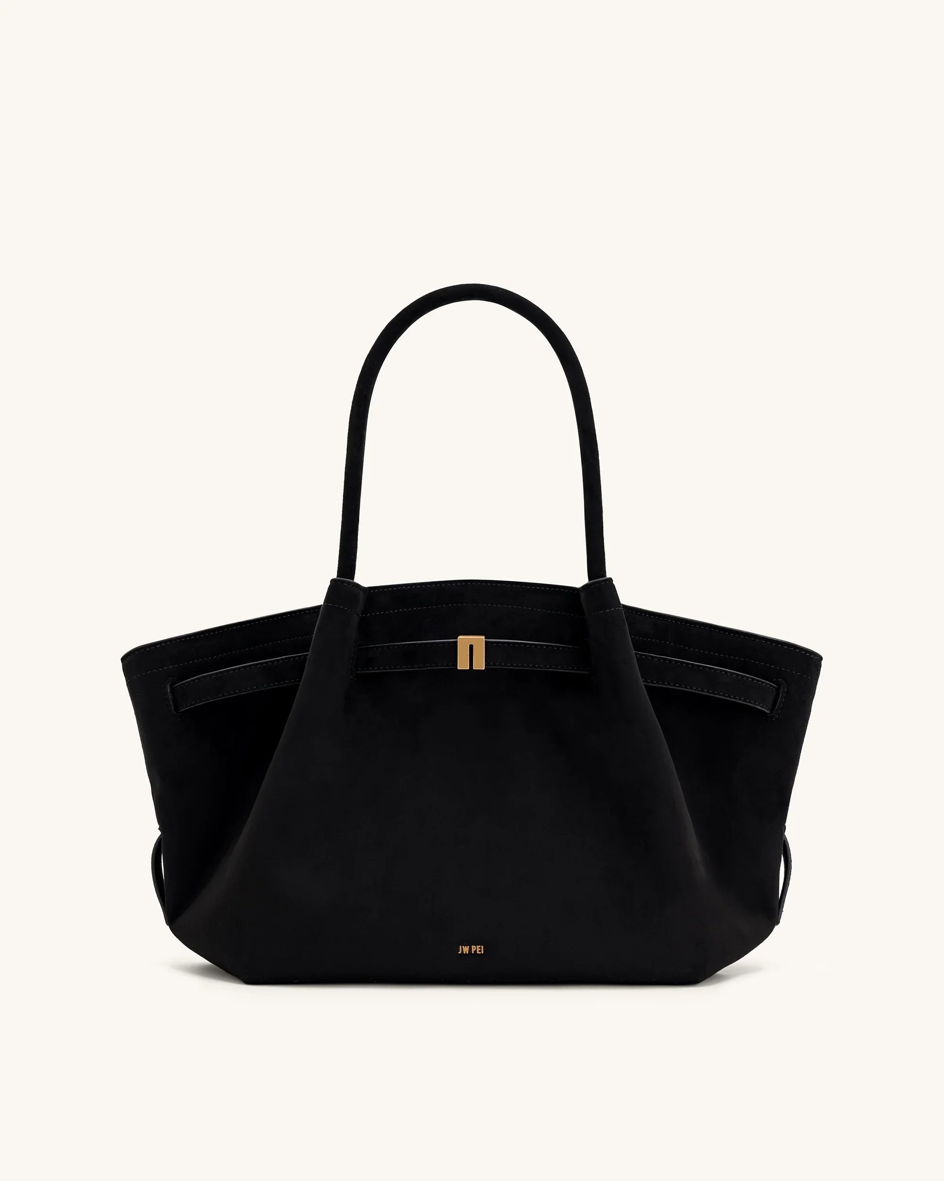 HANA MEDIUM SUEDE TOTE BAG - BLACK