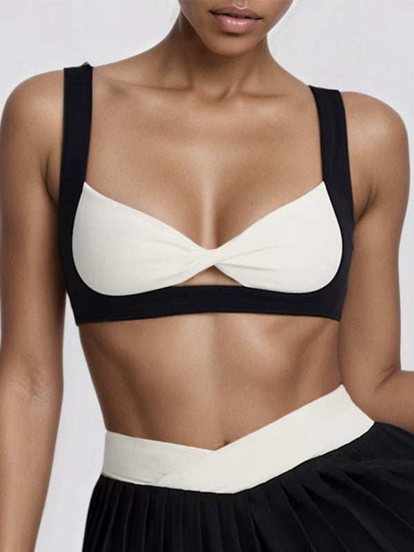 Features: Sexy teenis skirt suit with cutout and contrast color design