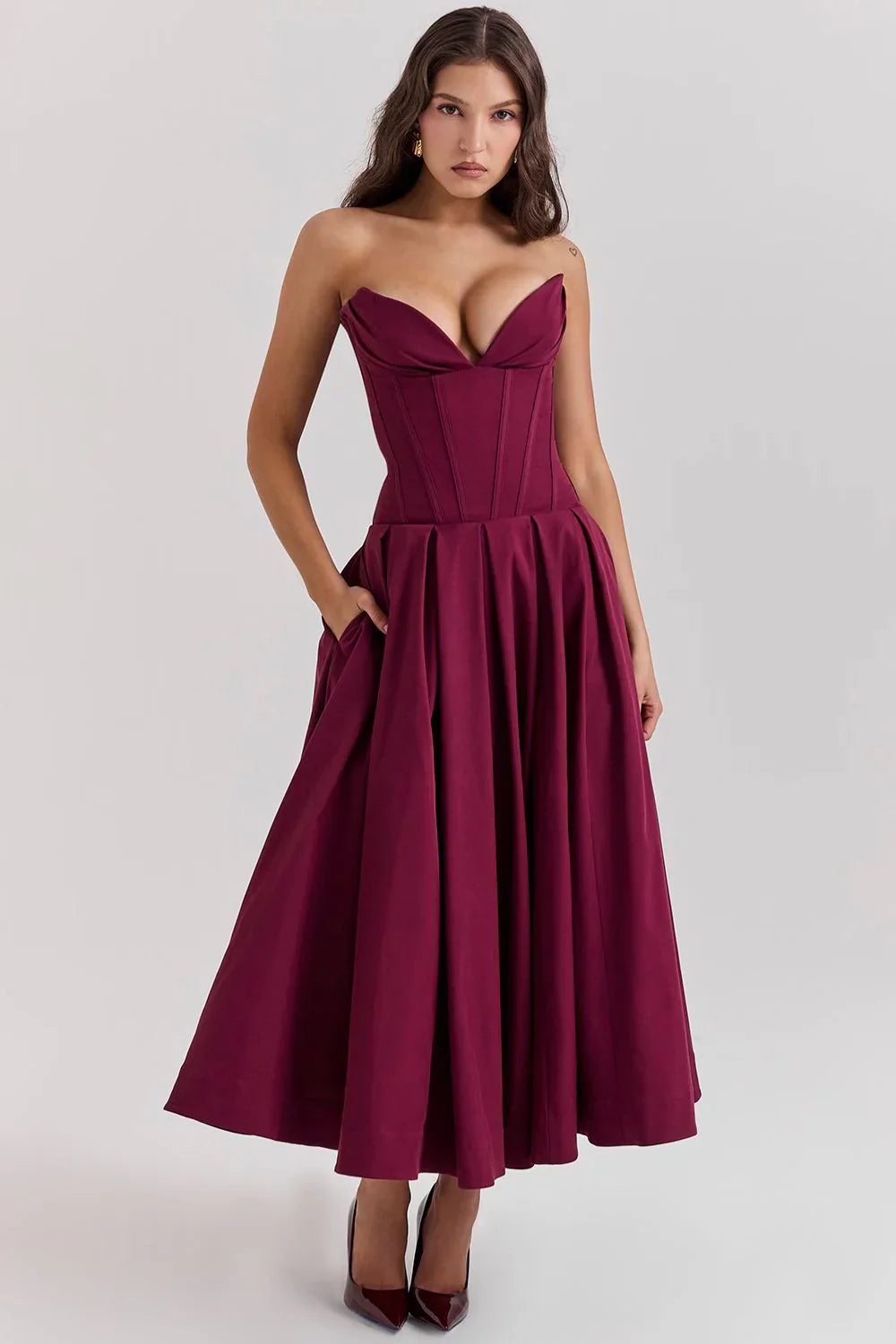 Zaria is THE dress for your special occasions this season. Featuring a feminine, chic design with an architectural sculpted bodice perfectly boned to cinch the waist, contrasted by a full, voluminous skirt for a stunning silhouette.
